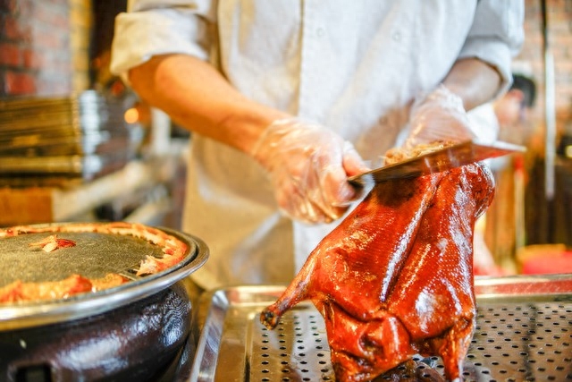 9. 烤鸭:烤鸭是河北地区的传统美食,以选用肥嫩的鸭子为原料,配以独特的烤制技巧而制成,口感鲜美,肉质酥脆。