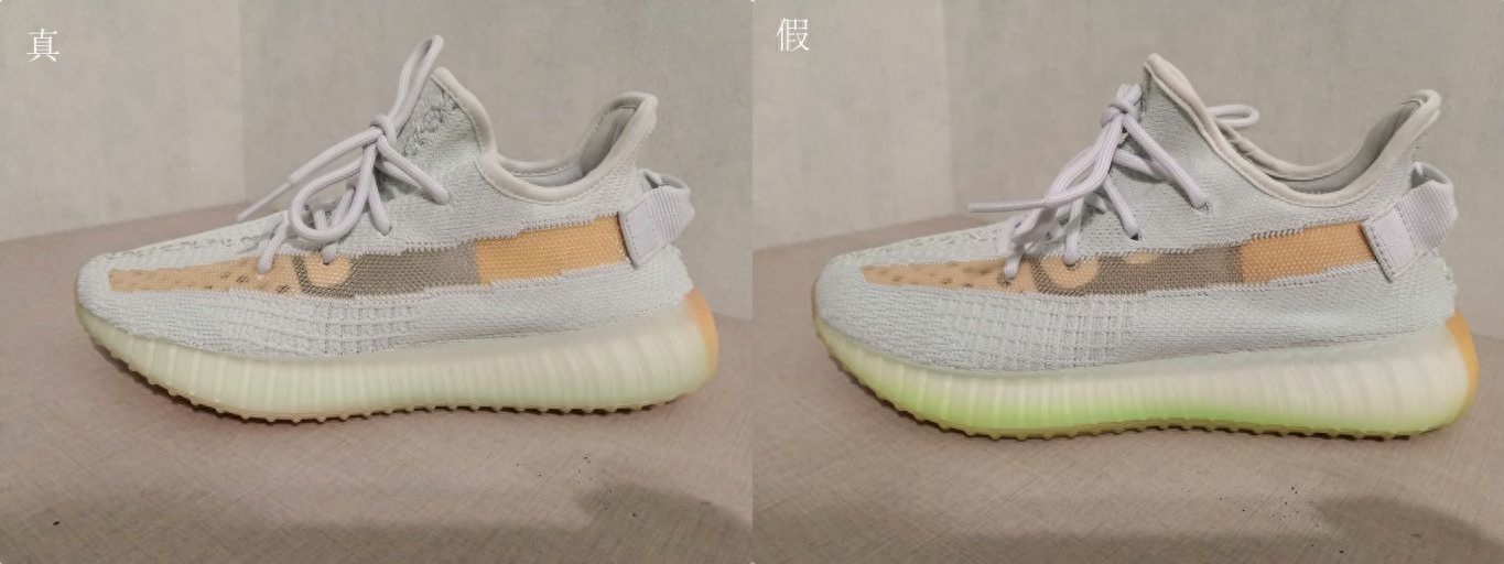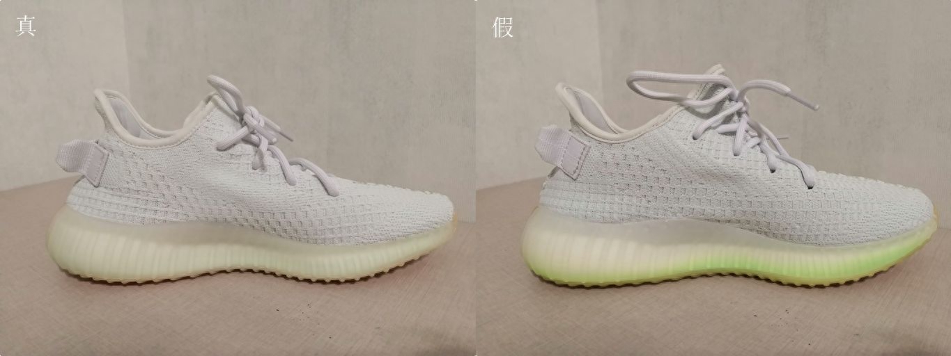 我专门卖了2双同码同颜色的椰子350(一真一假)来做个对比,