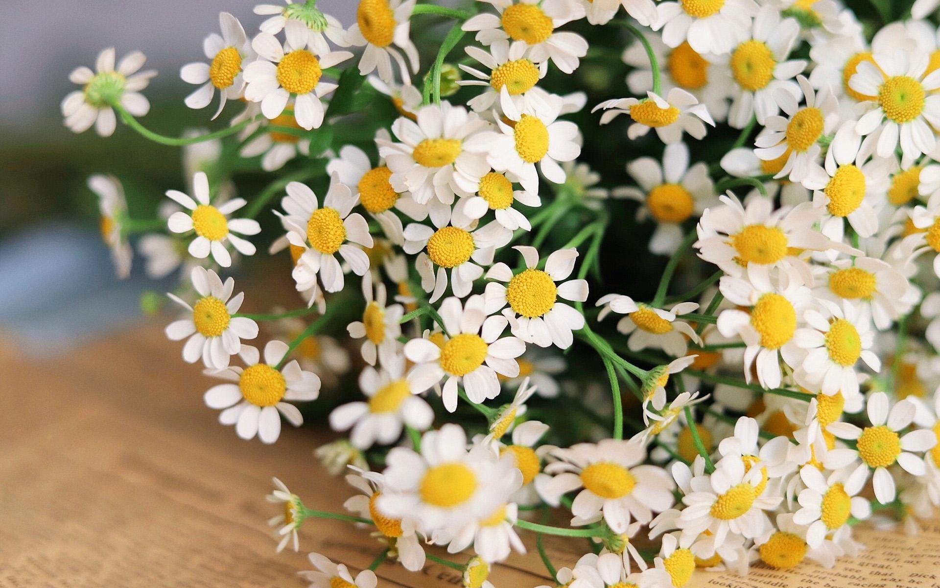 洋甘菊黄色的花蕊,白色的花瓣,细碎、精巧,单独看上去有那么一点不起眼。但是,当它们聚合成一簇时,却又显得那么清新、雅致,生机盎然。