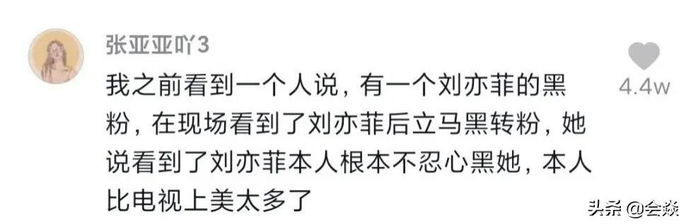 看到这个偶遇者的分享,其他网友纷纷点赞,还有网友进行了补充。说之前有个刘亦菲的黑粉,在现场遇到了刘亦菲后立马由黑转粉了,因为看到了刘亦菲本人之后根本不忍心黑她,本人比电视上美太多了。
