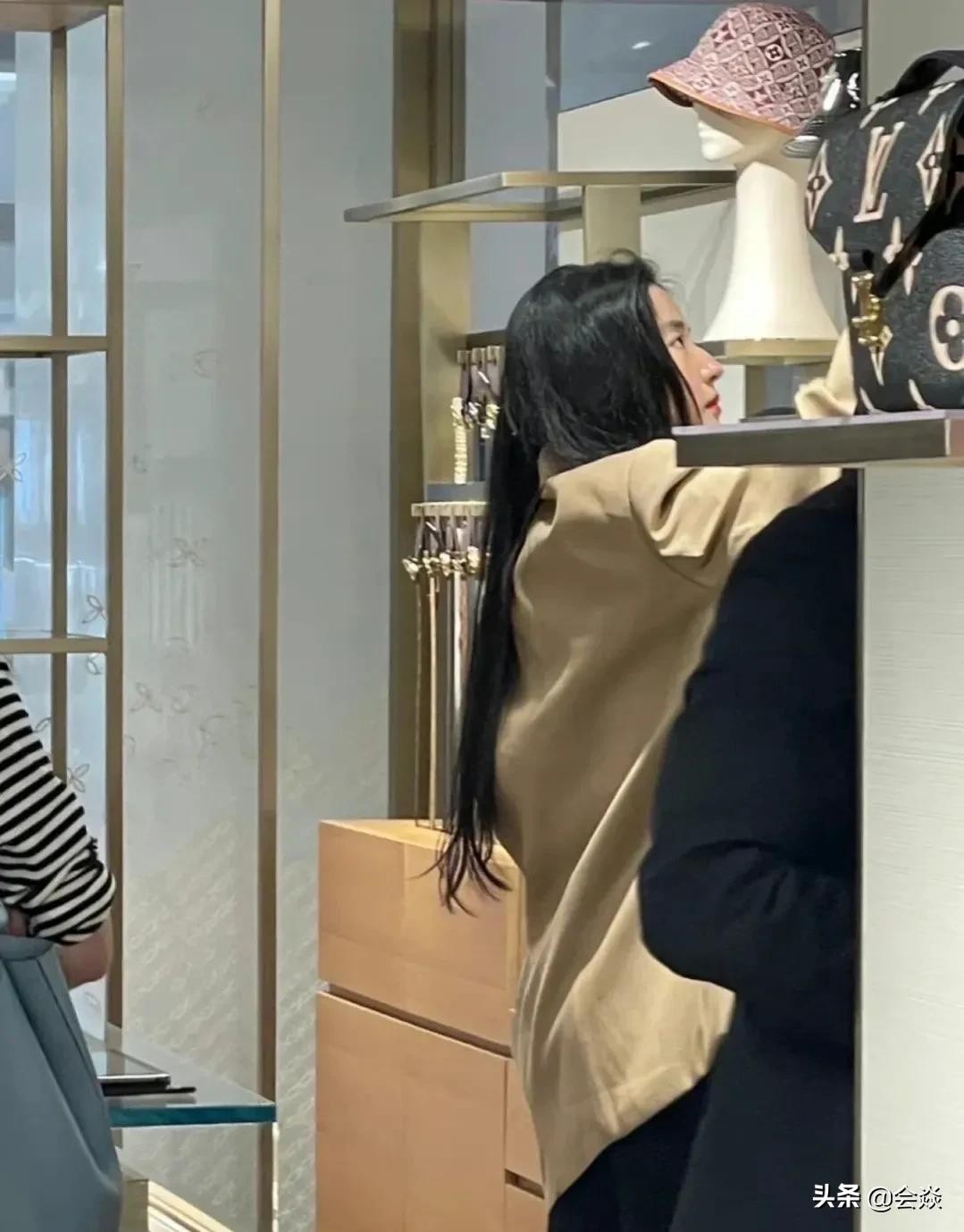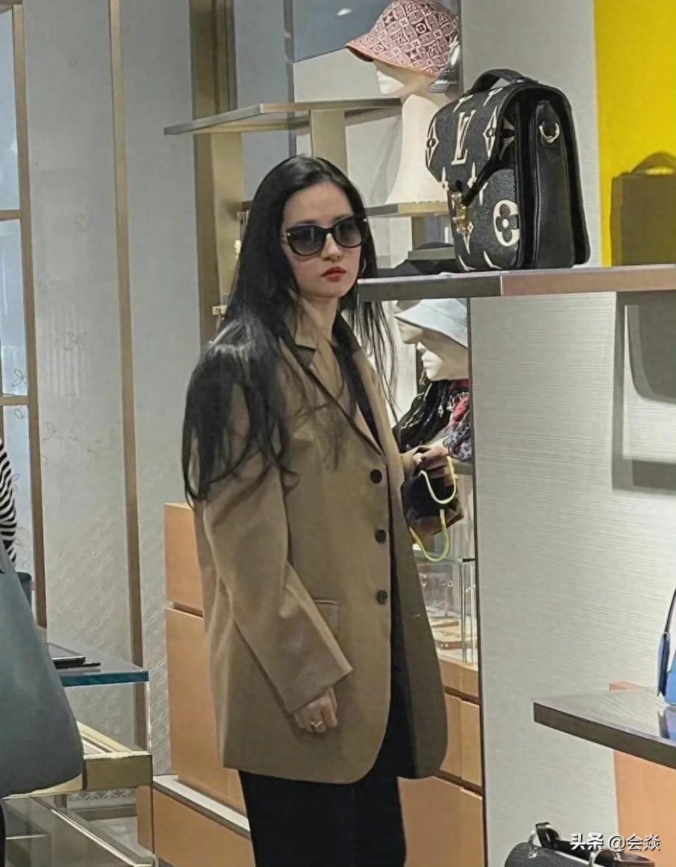 从曝光的照片可以看到,34的刘亦菲戴着墨镜,一头披肩秀发,身穿卡其色西装外套,下身黑色阔腿裤,整体造型休闲干净简单,正在很专注的挑选心意的物品。