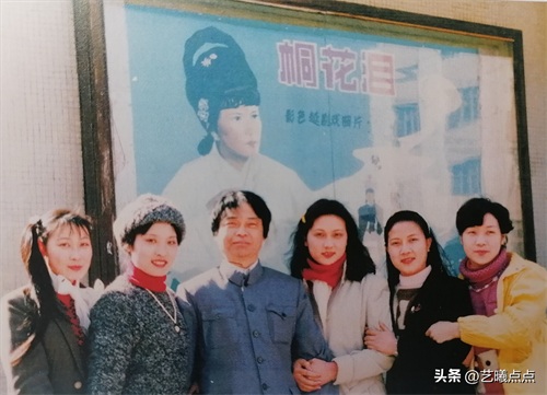 5、1986年,单仰萍、谢群英、许志英等主演的越剧电影《桐花泪》上映了,姐妹们太高兴了,赶紧在影院门口的宣传画下合个影,纪念下喽。