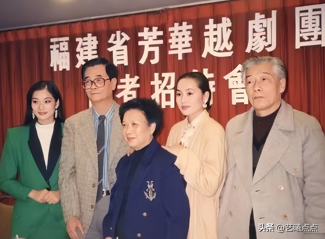 2、当年,越剧宗师尹桂芳带着得意弟子王君安(后排右2)、“王派”花旦李敏(后排左1)参加记者招待会,如今王君安、李敏成了芳华越剧团的台柱了。
