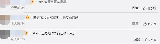 还有网友给Faker编段子,说恩静结婚那天,韩服的王者们都不敢上线,因为怕遭到李哥的狂虐,心里的苦闷无处发泄。