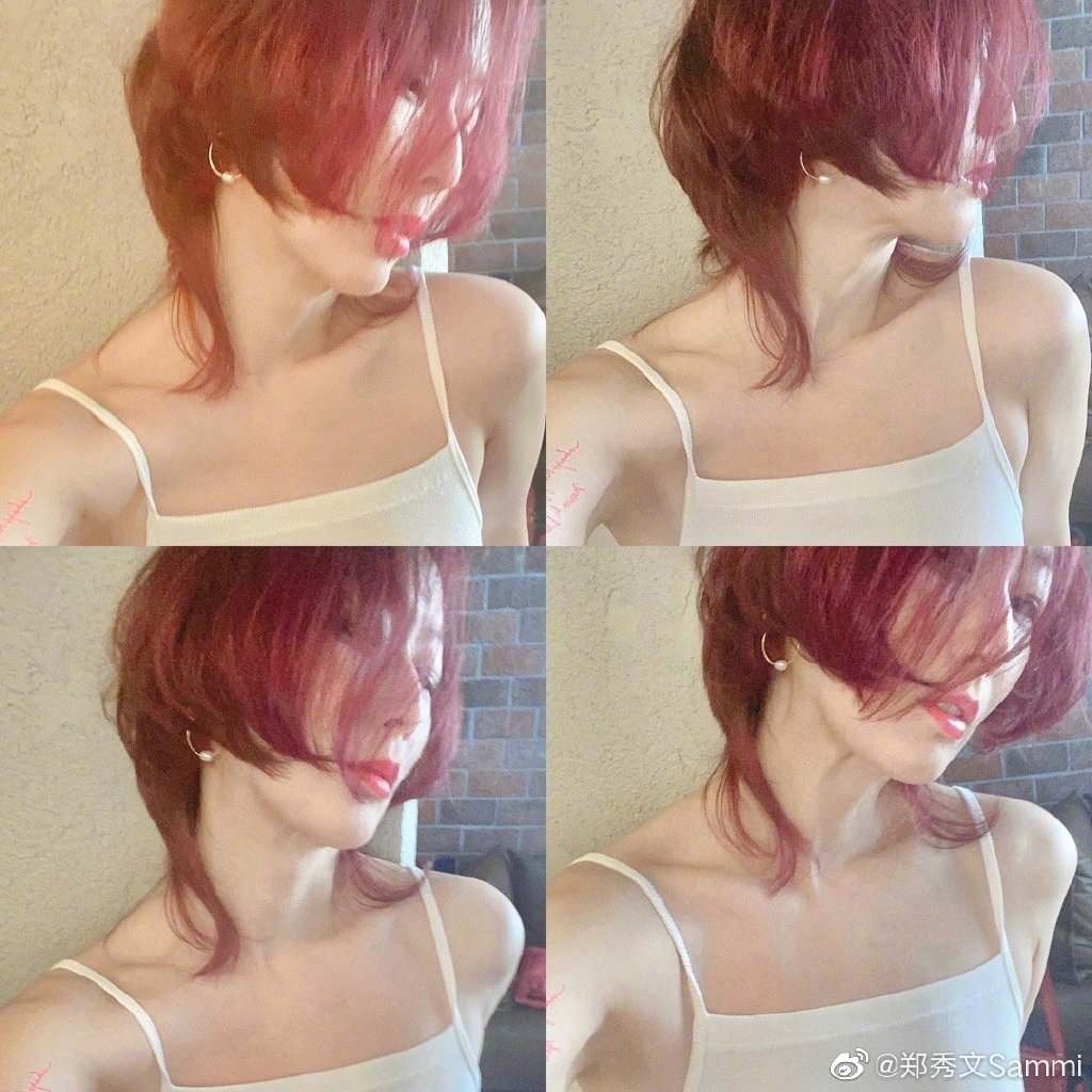 郑秀文晒发型自拍,红色水母头时尚感十足,49岁不见衰老痕迹