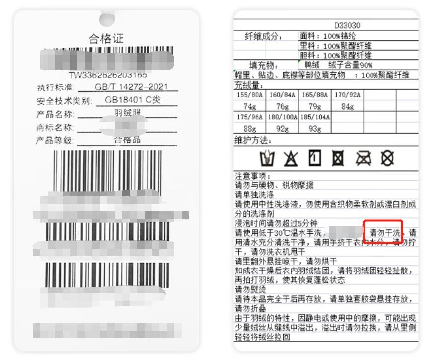 干洗、漂白的药水,会对羽绒造成同样的伤害,绝大多数的羽绒服都会有“不可水洗”的标志,所以这种羽绒服,就算你送到了干洗店,也是给你水洗。