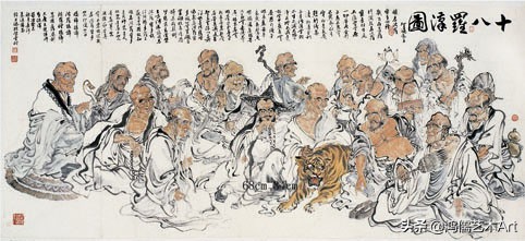 十八罗汉的完整套图 公元2世纪时狮子国(今斯里兰卡)庆友尊者作的《法住记》中,记载了十六阿罗汉的名字和他们所住的地区。这部书由唐代玄奘法师译出之后,十六罗汉便普遍受到我国佛教徒的尊奉。到五代时,绘画雕刻日益兴盛起来。后来画家画成了十八罗汉,推测画家原意可能是把《法住记》的作者庆友和译者玄奘也画在一起。但后人标出罗汉名字时,误将庆友列为第十七位住世罗汉,又重复了第一位阿罗汉宾头卢的名字成为第十八位。虽然宋代已经有人指出了错误,但因为绘画题赞者有著名书画家和文学家,如贯休、苏东坡、赵松雪等人,所以十八罗汉很容易地在我国流传开来。