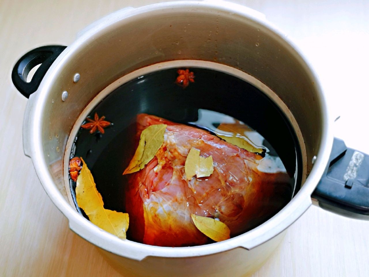 4、接着是将牛肉和酱汁倒入锅里,加入适量的纯净水,水量大概要超过牛肉。先用大火煮开,煮开之后再转成小火,继续的煮30分钟左右。具体时间还要看食材的多少,牛肉多得话当然要煮得更久,关键是要煮烂煮入味。