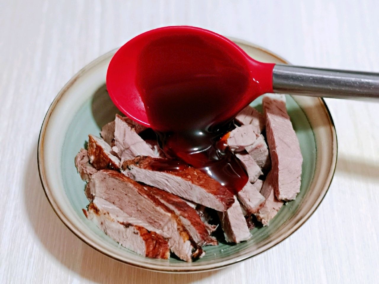 【配料】牛里脊肉,五香粉,孜然粉,生抽,蚝油,料酒,八角,桂皮,香叶
