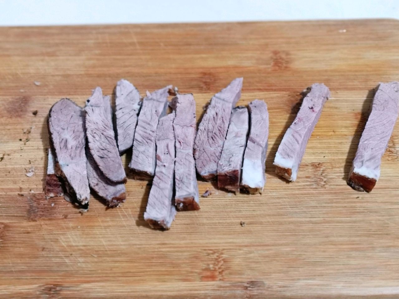 5、卤好之后的牛肉夹出来,要完全的放凉,也可以先放在冰箱里面冷藏,之后再拿出来切成条。记住必须要完全的凉透再切成条,不然容易切碎。