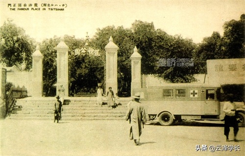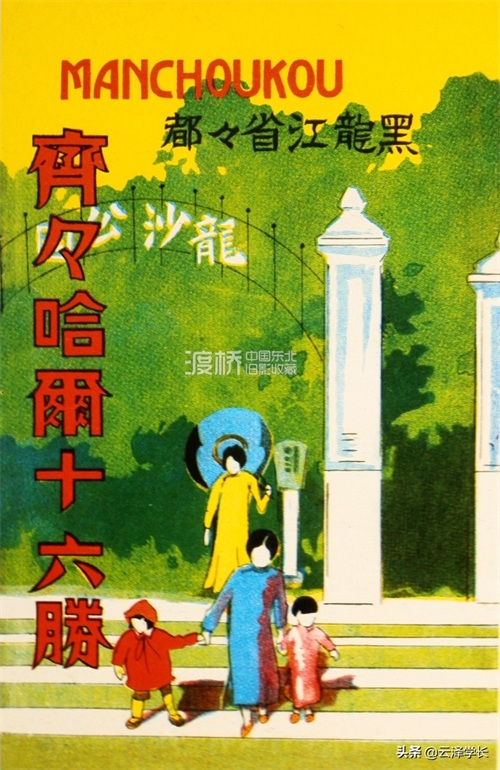 伪满时期,明信片上的齐齐哈尔龙沙公园正门