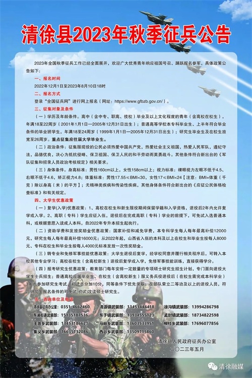清徐县2023年秋季征兵公告