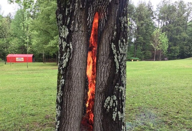 雷电击中树木的情况并不少见,但能够亲眼目睹并有心将它记录下来的人并不多。近日Twitter网友发布了这张被雷击中的大树照片,这张照片已经获得了10000+的转发,首获超过25000个赞。对此不少网友认为这一定是通往地狱或者异次元的裂缝。