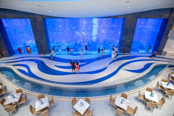 走进酒店,眼前的一切更令我叹为观止,原来这是一座藏在海底的美丽城堡,仿佛走进了海底世界,偌大的水箱让游人忍不住驻足停留,形形色色的海洋生物肆意游动,让人目不转睛。