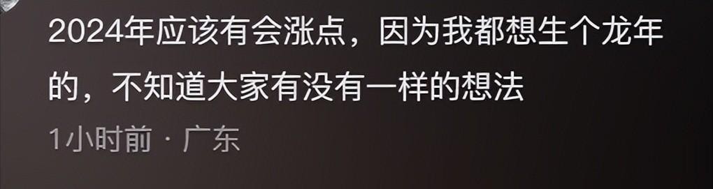 虽然今年数据不太好,但也有乐观网友说,2024年会好起来的,因为2024年是龙年,想生个龙宝宝。