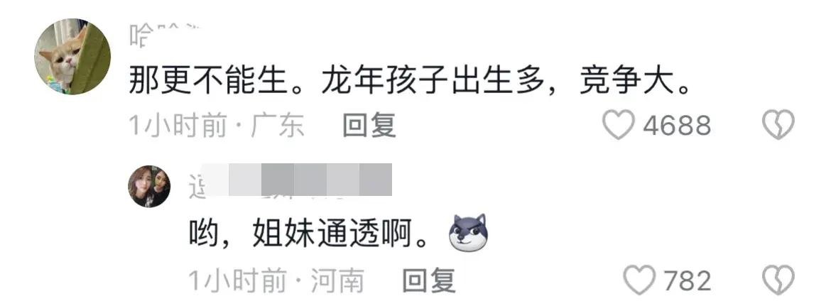 有网友对于专家预测,表示不认同:“那更不能生。龙年孩子出生多,竞争大。”