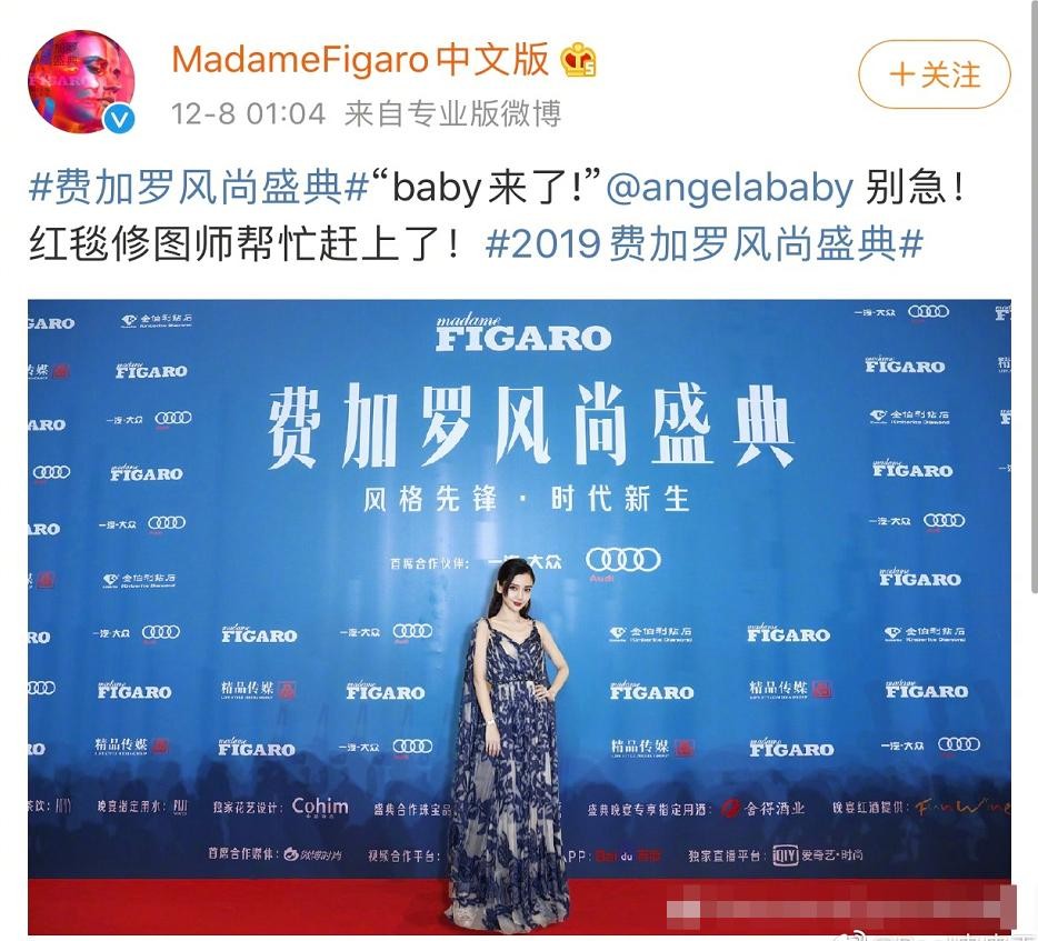 8日凌晨1点,某时尚杂志的官微是这样说的:baby来了,anglebaby别急!红毯修图师帮忙赶上了。