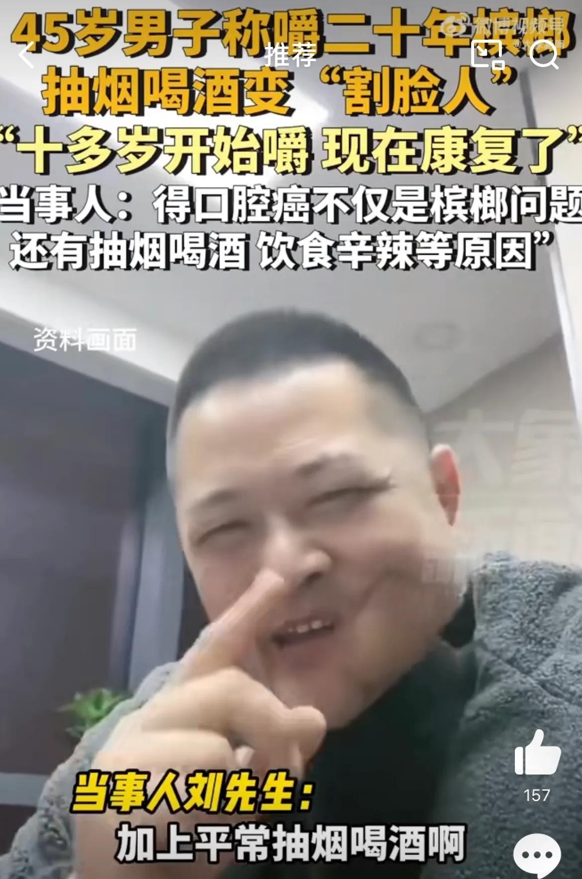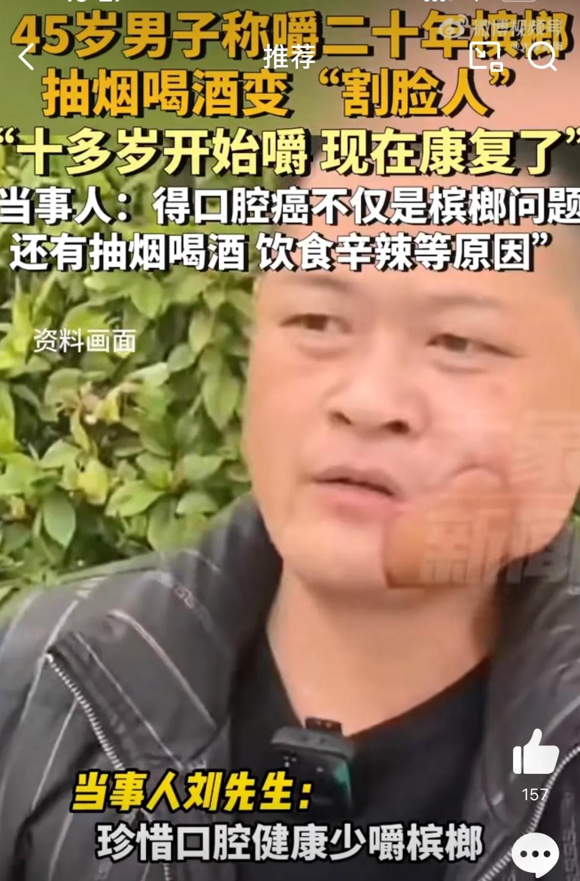 在社交媒体上,网友们的评论也十分热烈。他们纷纷表示了对刘先生经历的同情和理解。同时,他们也分享了自己对槟榔的看法和经验,引发了关于如何正确对待和戒除不良习惯的讨论。