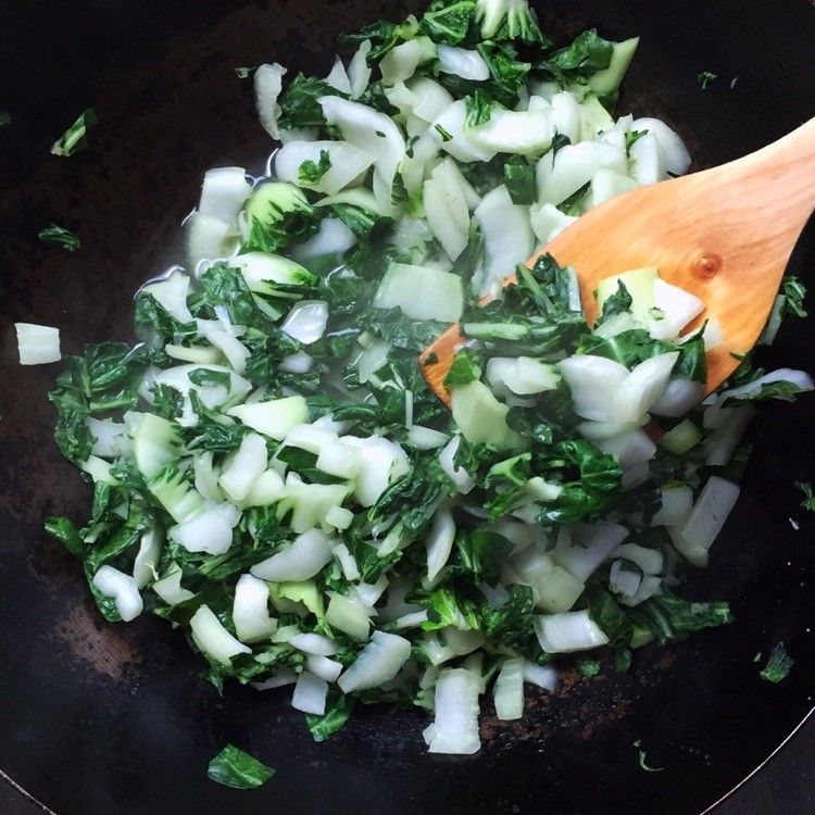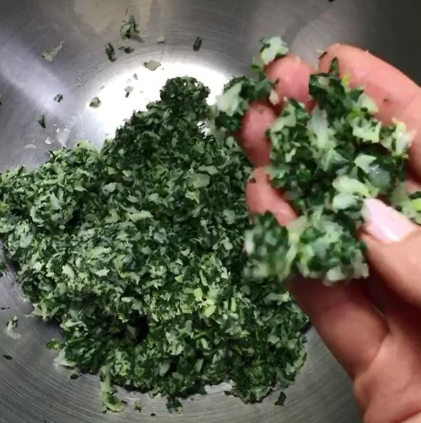 7、青菜馅干到这个程度就可以了