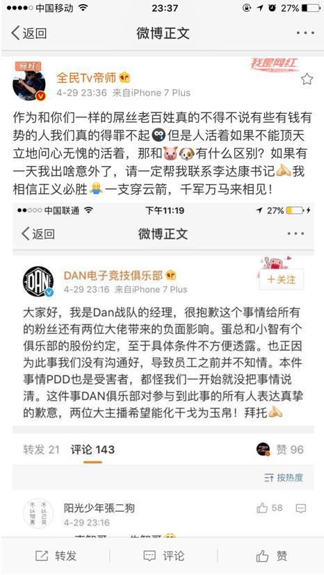 可是在DAN经理发微博后,忍不住又转发:相信正义必胜。
