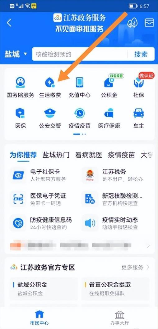 2、点击生活缴费。如果找不到,可以在顶部搜索生活缴费;