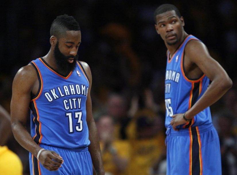 哈登的生涯起点很高,他大学时就表现出色,是个技巧和天赋兼备的优秀分卫。所以在2009年的选秀大会上,哈登以探花秀的身份被选中。当时摘下他的球队是雷霆队,哈登的新秀合同则是4年1870万美元。对一个菜鸟来说这份薪水不低了,最终哈登三年级时就有场均16.8分4.1篮板3.7助攻的数据了,他拿到了最佳第六人的荣誉,也帮助雷霆打进了总决赛,算是巨星苗子了。
