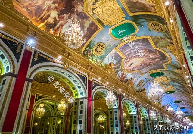 走进酒店的大堂,映入眼帘的是一个金碧辉煌奢华到极致的长廊。高高的拱形柱子,华丽的水晶吊灯,最让人惊讶得合不拢嘴的是房顶上精妙绝伦的壁画,壁画上记录着西方的神话传说、历史典故和故事等,栩栩如生,感觉就像走进了欧洲的皇宫里。