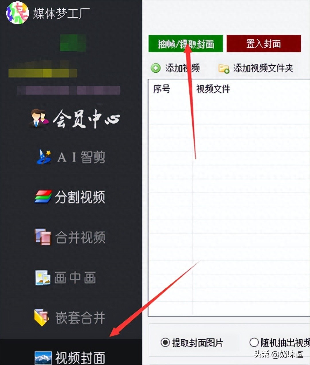 1.启动软件并定位功能:打开媒体梦工厂,选择“视频封面”板块的“抽帧/提取封面”功能
