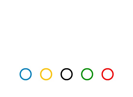 红、黑、蓝、绿、黄五个相互环扣的圆环组成了世界上最为人们普遍接受的标志之一。传统上,五环代表奥林匹克运动会所包含的世界上五个不同的地区(北美洲和南美洲被认为是一个地区,其他四个地区为非洲、大洋洲、亚洲和欧洲)。