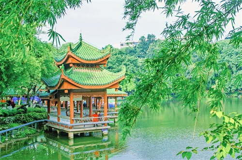 作为重庆市一级达标公园,公园的园林景观布置还是比较用心的,沿途看到的景色也赋予了不错的雅名,如碧塔耸翠、碧湖泛舟、七夕飞虹、曲桥风荷、柳榭桂香、鹤鸣清泉等。