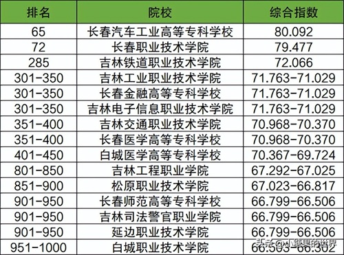2024年吉林省所有大专学校排名如下图。