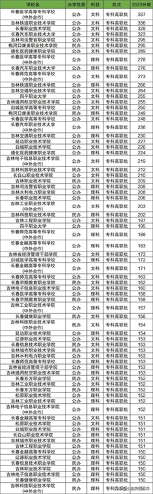 吉林所有专科学校分数线排名一览表如下: