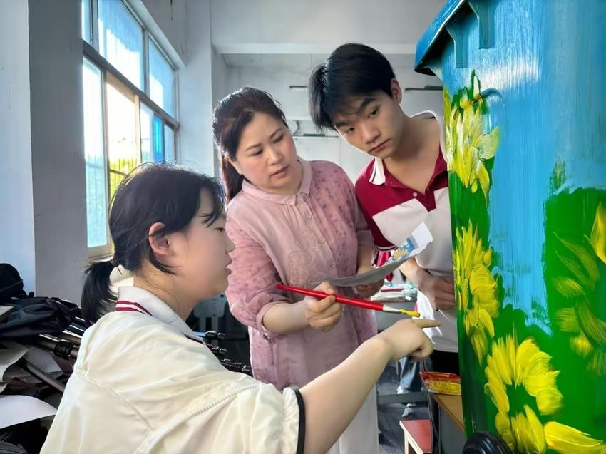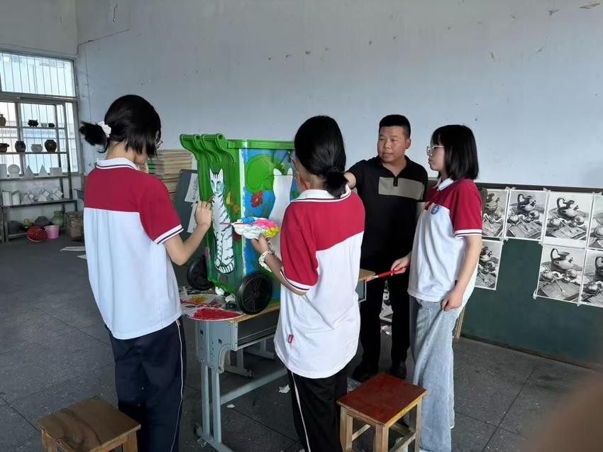 5月28日,在随县二中老师的带领下,来自该校艺术班的四名学生将他们精心绘制的卡通版垃圾桶,一起送到了湖北省随州市随县洪山镇茅茨畈居委会,这也是该校师生积极参与美好环境与幸福生活共同缔造工作的美丽缩影。
