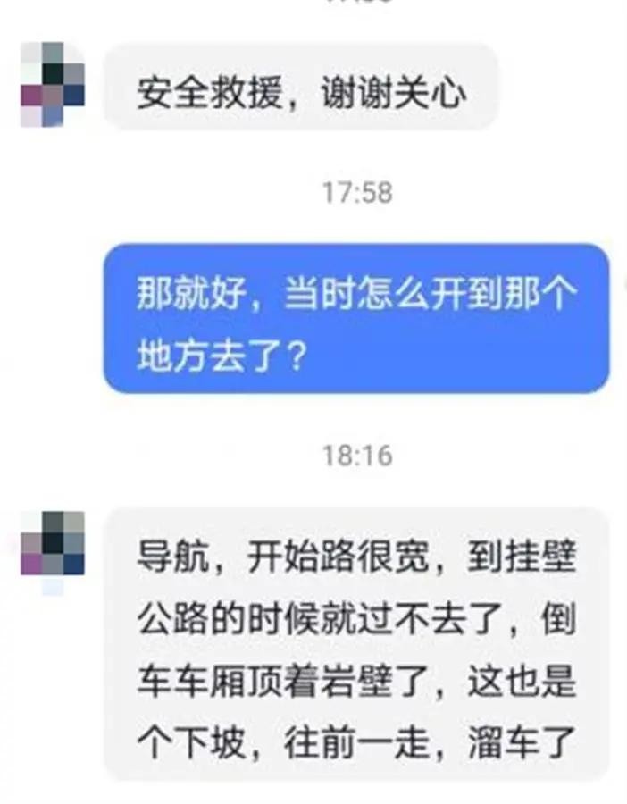 记者联系上涉事货车司机,他表示自己是跟着导航走的,刚开始路很宽,但到挂壁公路的时候就过不去了。他见状便想倒车,但由于此处是下坡路,加上后面车厢顶着岩壁了,倒车未果反而溜车了,导致车头伸出了悬崖。
