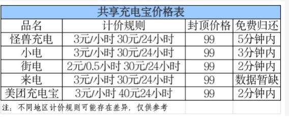 记者查询武汉市共享充电宝价格后,整理如下: