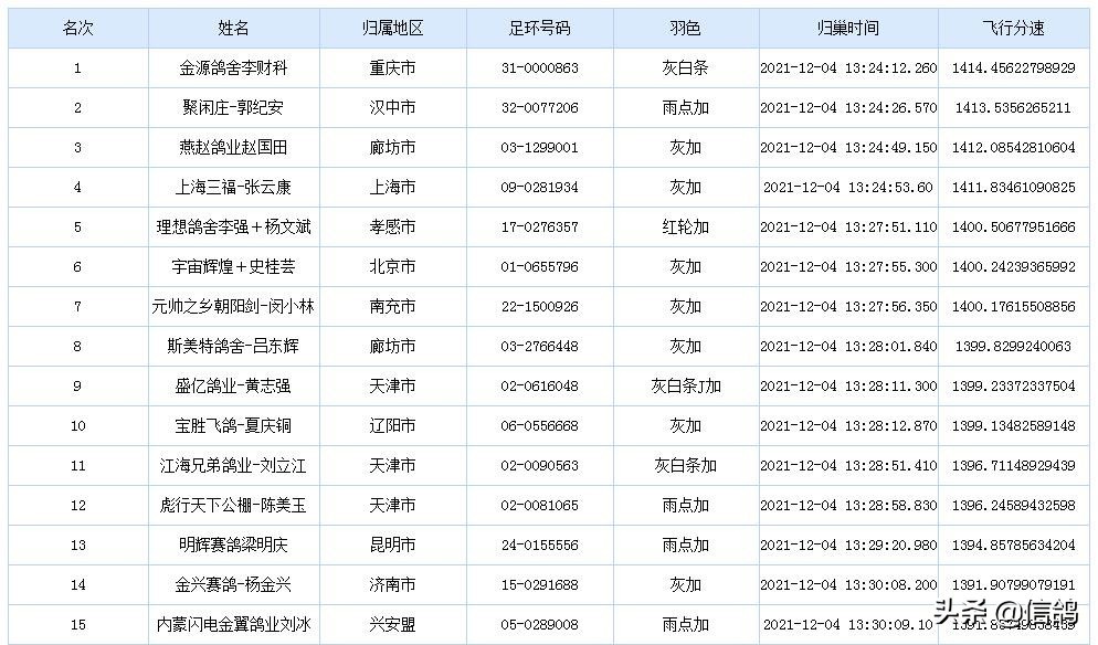 点击上方关注,精彩内容不容错过!信鸽每日为您带来赛鸽赛事最新战报,分享养鸽小常识,欢迎大家点赞关注,共同交流学习!
