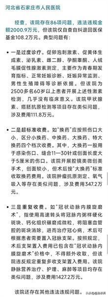 又一家三甲医院栽了。石家庄市人民医院因违法违规被国家医保局点名,涉及问题86项,违规金额超过两千万元。这可不是小打小闹,而是一场大规模“自爆”——从过度诊疗到重复收费,从超标准收费到内部管理混乱,简直就是一本“医院违规操作大全”。