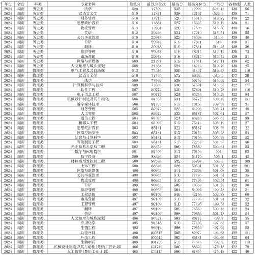 一、长沙学院2024年在湖南本科批各专业录取分数线